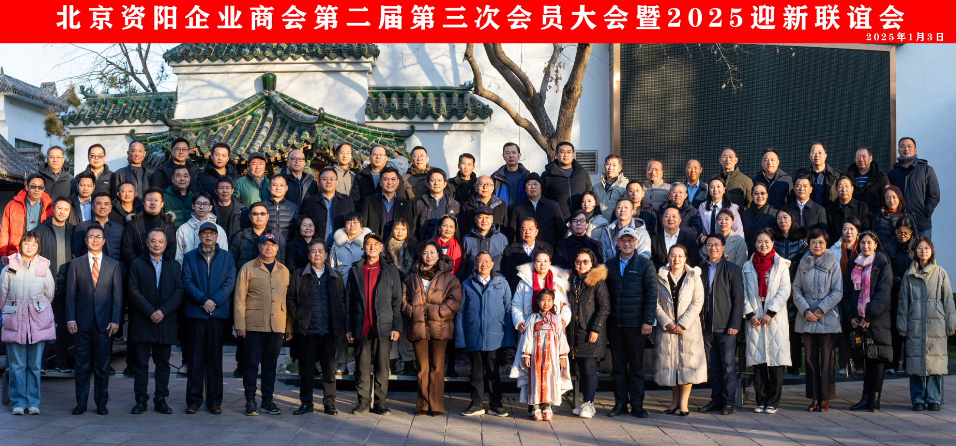 2025年1月3日, “谈笑有资 智创未来 —北京资阳企业商会第二届三次会员大会暨 2025 新春联谊会” 在北京川办龙爪树宾馆隆重举行。华灯璀璨,气氛热烈,来自在京资阳籍领导、专家、乡贤、企业主、知名企业高管、退役军人、大学生、兄弟商协会会长秘书长和商会会员等 180 位嘉宾齐聚一堂,共同回顾商会发展历程,展望未来美好蓝图。