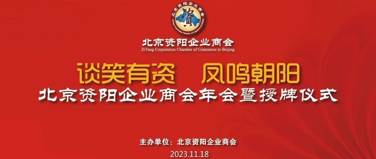 尊敬的先生/女士:感谢您一直以来对北京资阳企业商会的支持与关注,我商会定于2023年11月18日(星期六)下午16:00-20:00,举办“谈笑有资·凤鸣朝阳”北京资阳企业商会年会暨授牌仪式。本次会议拟邀请资阳市委、市政府,市政协,市投资促进局,市工商联,市人社局等相关领导出席。会议还将邀请北京四川各地市商会、全国异地资阳商会,以及全国工商联石油业商会、中国物资储运协会、北京专精特新企业商会、中关