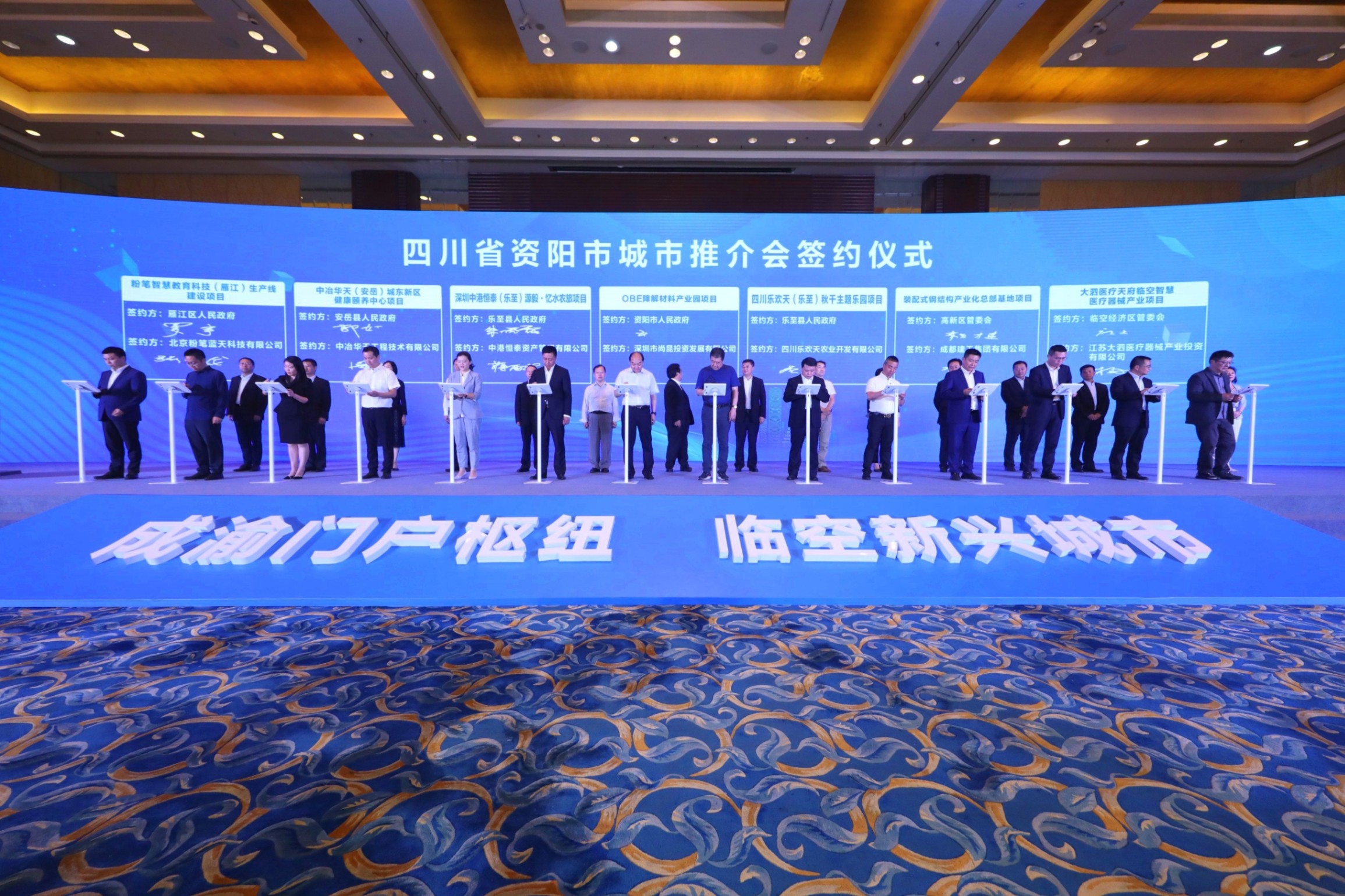 2021年5月28日,“成渝门户 • 机会之城”——四川省资阳市城市推介会在成都举行,本次推介会由中共资阳市委、资阳市人民政府主办,资阳市经济合作和外事局、资阳市发展改革委、资阳市同城化发展工作局承办。会上发布了资阳市2021年城市机会清单,以及举行了项目集中签约仪式,签约项目中包括:北京资阳企业商会会长单位——国通电子股份有限公司与资阳高新技术产业园区管理委员会签订的“内置耳机配套生产线项目”、执行会长单位——北京粉笔蓝天科技有限公司与雁江区人民政府签订的 “粉笔智慧教育科技(雁江)生产线建设
