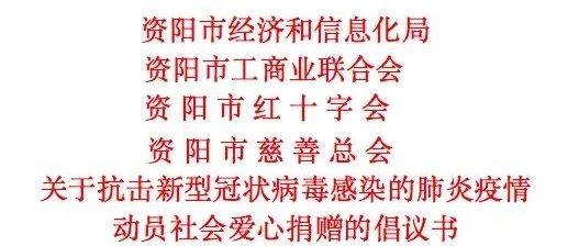 转:资阳市“关于抗击新型冠状病毒肺炎疫情爱心捐赠”的倡议书